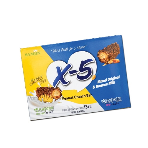 Với 2 hương vị tổng hợp và sữa và chuối, cùng lớp vỏ bánh X5 SAMJIN giòn tan sôcôla sẽ mang lại cho bạn trải nghiệm thú vị mỗi lần thưởng thức