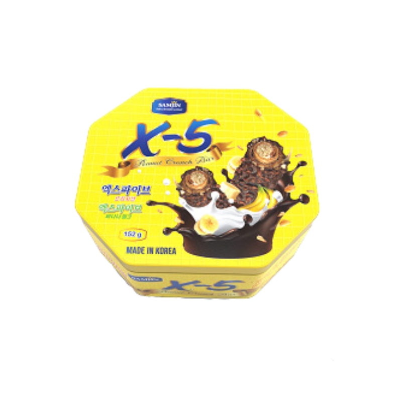 Bánh X5 bát giác màu vàng 152g được thiết kế độc đáo với hộp bát giác sang trọng, là món bánh hoàn hảo dành cho mọi bữa tiệc hoặc làm quà tặng. Bên trong là những chiếc bánh giòn rụm, được phủ lớp kem béo ngậy, hòa quyện hương vị thơm ngon, hấp dẫn.