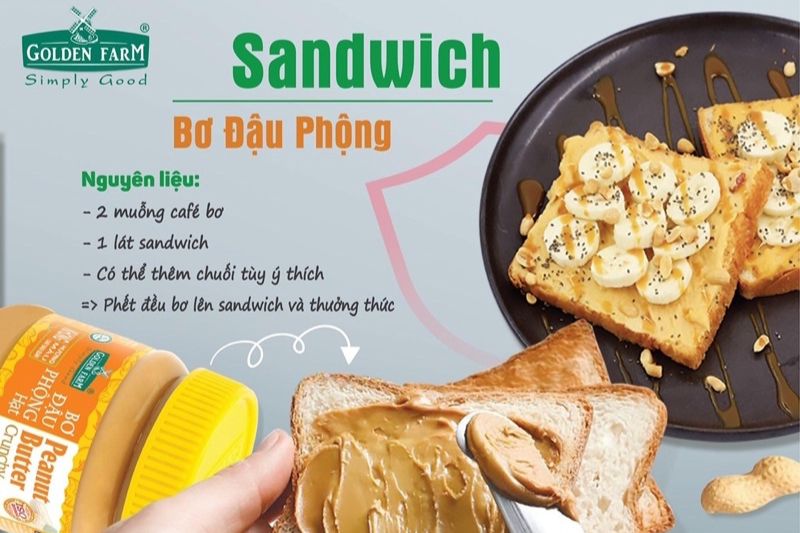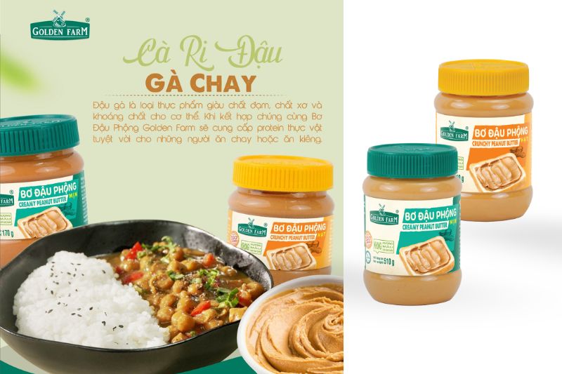 Bơ Đậu Phộng Golden Farm được làm từ hạt đậu phộng hảo hạng và các loại gia vị tự nhiên, là “siêu thực phẩm” dinh dưỡng, cung cấp nguồn năng lượng dồi dào và các dưỡng chất thiết yếu cho cơ thể.