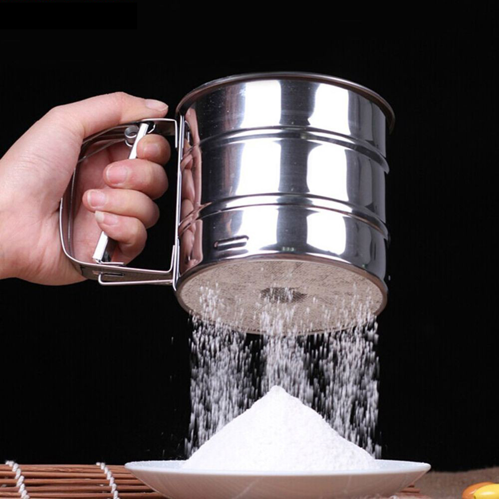 Loại bỏ vón cục và mảnh vụn bột hiệu quả. Giữ tay cầm, cho bột vào rây bột, lắc nhẹ, bột sẽ rơi ra