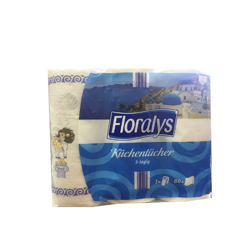 Giấy bếp hiệu Floralys – lốc 3 cuộn 80 tờ
