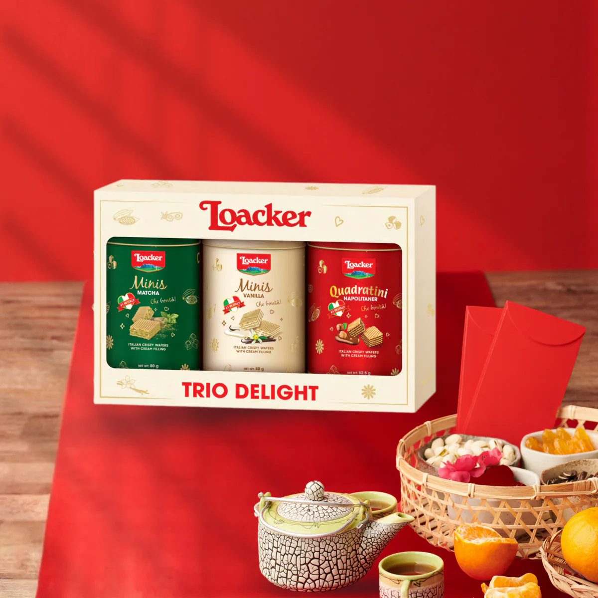 Loacker Trio Delight là sự kết hợp tinh tế của ba hương vị đặc trưng đến từ thương hiệu bánh xốp nổi tiếng nước Ý – Loacker. Với thiết kế hộp quà sang trọng, đây là món quà lý tưởng để biếu tặng, chia sẻ cùng gia đình, bạn bè hoặc đối tác trong những dịp đặc biệt.