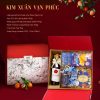 Hộp quà Tết Kim Xuân Vạn Phúc được thiết kế với gam màu đỏ chủ đạo mang ý nghĩa may mắn và phú quý, kết hợp cùng họa tiết hoa văn cổ điển, tạo nên vẻ đẹp sang trọng và thanh lịch. Đây là món quà lý tưởng để gửi gắm những lời chúc tốt đẹp nhất đến gia đình, bạn bè và đối tác trong dịp năm mới.