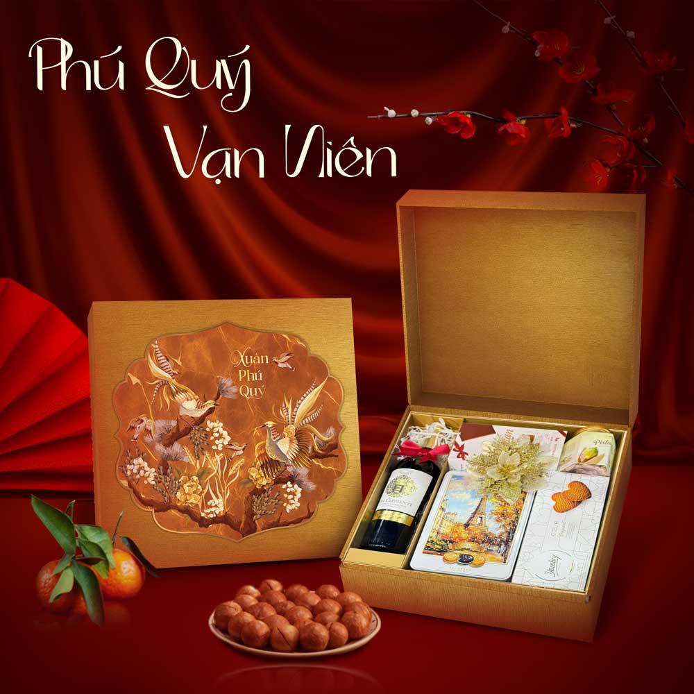 Hộp quà tết cao cấp Phú Quý Vạn Niên TP06 2026 là món quà sang trọng dành cho những lời chúc năm mới giàu sang, may mắn và bền vững theo thời gian. Tên gọi Phú Quý Vạn Niên mang ý nghĩa tài lộc dồi dào, phồn vinh lâu dài, rất phù hợp làm quà tặng đối tác, khách hàng quan trọng, sếp hoặc người thân trong dịp tết 2026.