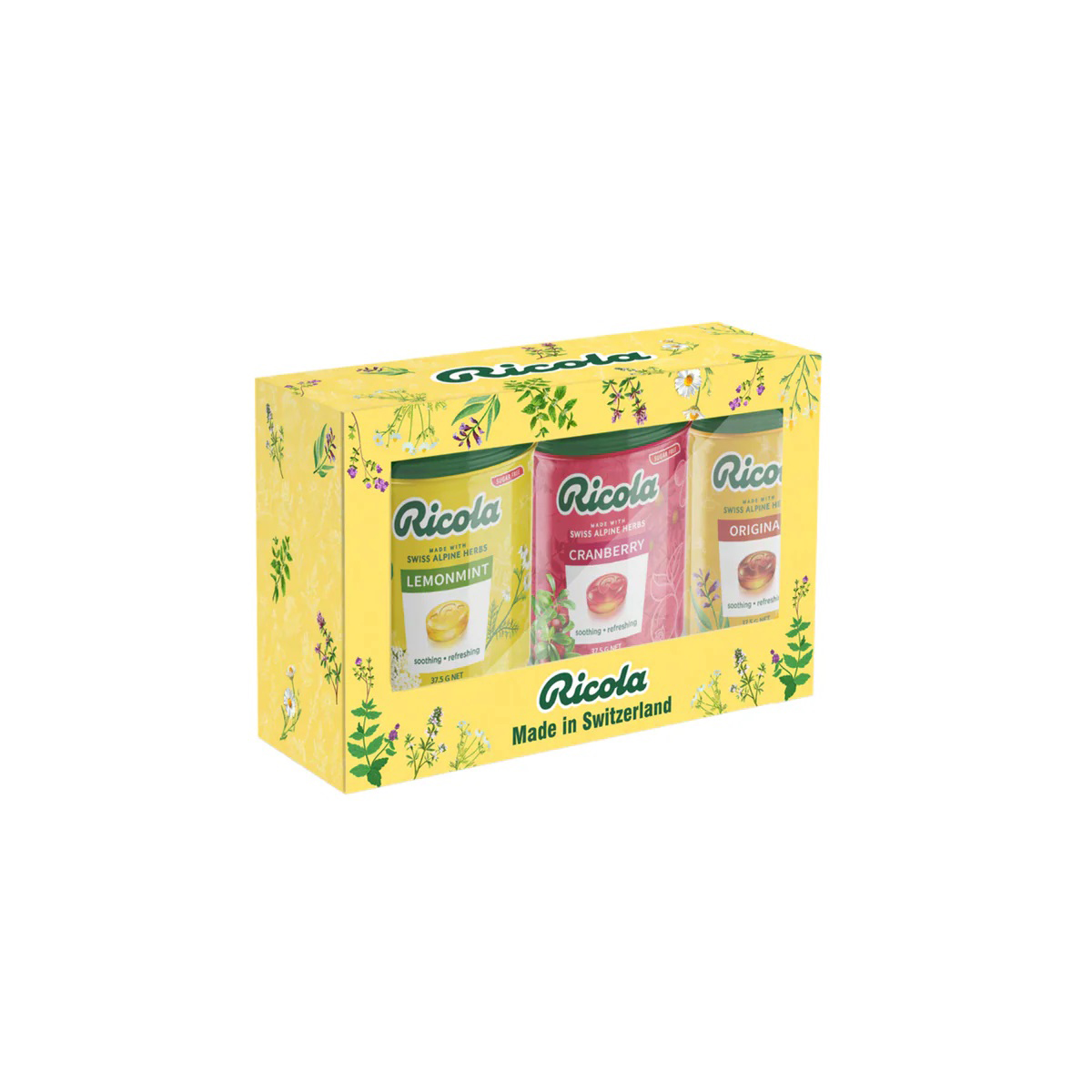 Tên sản phẩm Hộp quà viên ngậm thảo mộc không đường Ricola 112.5g (3 loại)