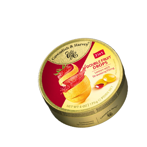 Kẹo trái cây vị Chanh nhân Dâu tây hiệu Cavendish & Harvey – hộp thiếc 175g