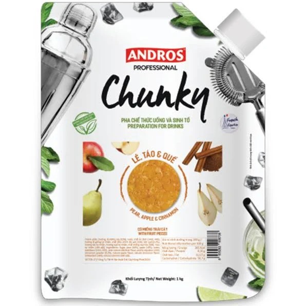 Mứt Chunky Andros vị Lê, Táo & Quế – Túi 1kg là sản phẩm mứt chất lượng cao đến từ thương hiệu Andros, nổi tiếng với các dòng sản phẩm trái cây tự nhiên. Đây là sự kết hợp hoàn hảo giữa hương vị ngọt ngào của lê, táo cùng hương thơm ấm áp từ quế, mang đến trải nghiệm vị giác độc đáo.