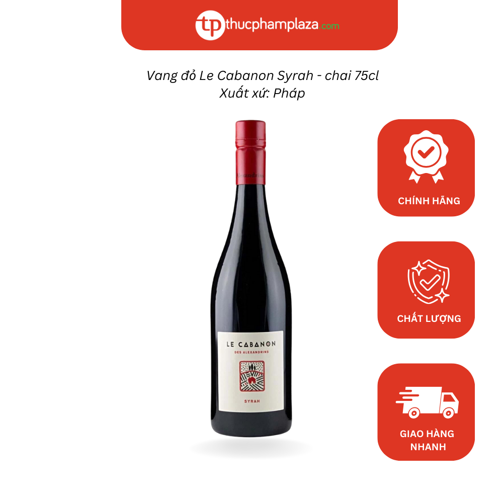 Rượu vang đỏ Le Cabanon Syrah, được làm từ 95% Shiraz và 5% Viognier. Nho được lựa chọn từ những vườn nho hàng đầu, sau quá trình lên men , rượu được ủ trong thùng thép không gỉ.