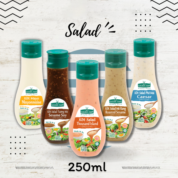 Xốt Salad Golden Farm 250ml các vị là lựa chọn tiện lợi cho những ai yêu thích salad nhưng không có nhiều thời gian pha xốt. Chỉ với vài thìa xốt, bạn đã có ngay tô salad ngon miệng, đậm đà, dễ ăn hơn rất nhiều so với việc dùng rau củ không gia vị.